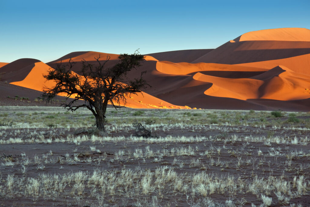 Zu den Highlights zählen Dünenwanderungen in Sossusvlei, Safaris im Etosha Nationalpark, Flugsafaris entlang der Skeleton Coast, Wanderungen im Fish River Canyon und kulturelle Begegnungen mit den Himba.