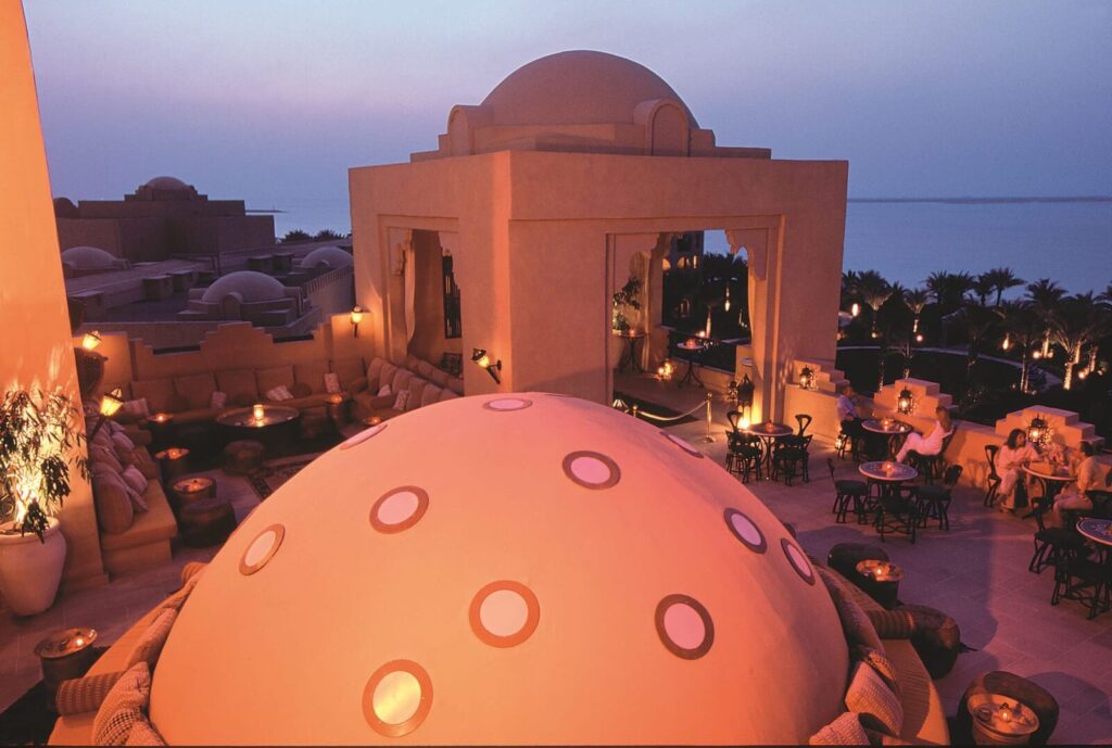 Die Architektur erinnert zum Teil an die ehemaligen Herrscherpaläste des Emirats mit ihren typischen Wind türmen. Auf der Dachterrasse können Sie unter freiem Himmel das wunderbare Panorama genießen und im schönen Innenhof bei arabischen Klängen eine originale Wasserpfeife rauchen.