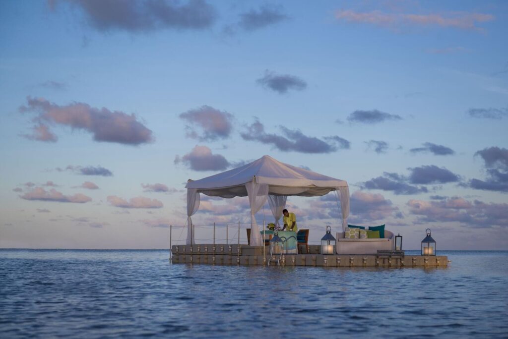 • Presidential Suite (375 m2): auf der Ile aux Chats, mit 620 m2 Außenwohnbereich, zwei Schlafzimmern, zwei Bädern, Ankleidezimmer, separatem Wohnzimmer, Küche, Arbeitszimmer und Gästetoilette